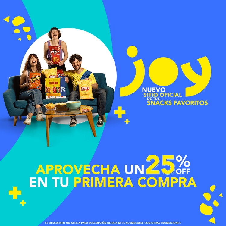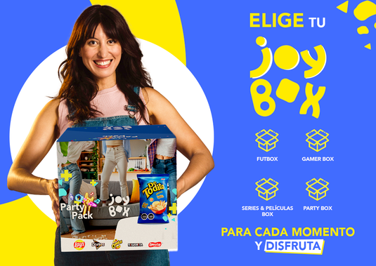 Muchos momentos y snacks para compartir ¿cuál prefieres? no te preocupes del picoteo y ahorra! elige tu Joy Box y estarás listo para cada ocasión: Maratón de series y películas, Celebraciones con amigos y familia, Partida Gamer, Fútbol y más. Cada Joy Box tiene REGALOS EXCLUSIVOS de tus snacks favoritos.